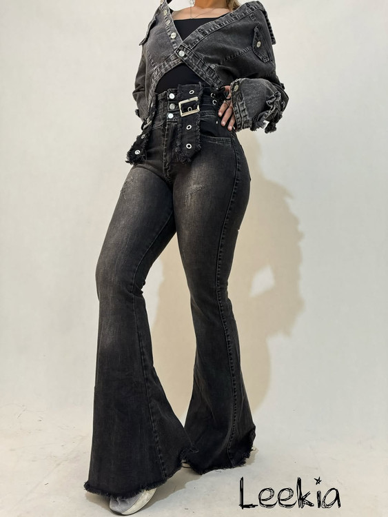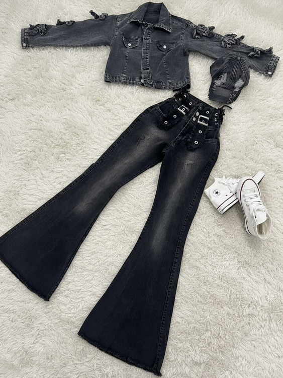 ست ذغالی بوتکات کمرگنی لیکیا + کراپ کت پاپیون